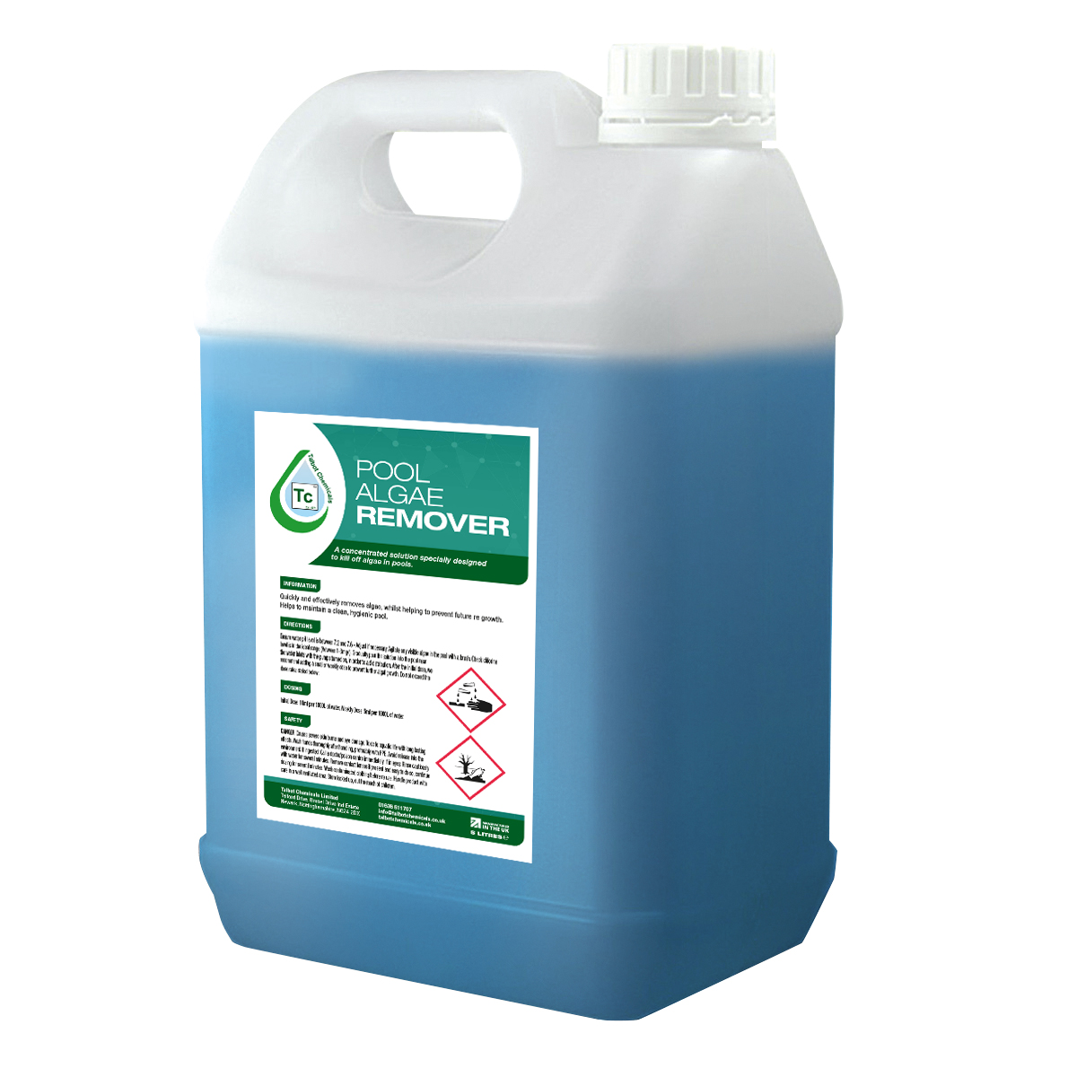 Ensure water pH level is between 7.2 and 7.6 – Adjust if necessary. Agitate any visible algae in the pool with a brush. Check chlorine level is in the ideal range (Between 1-3mg/l). Gradually pour the solution into the pool near the water inlets with the pumps turned on, in order to aid distribution. After the initial dose, we recommend adding a smaller weekly dose to prevent further algal growth. Do not exceed the dose rates stated: Initial Dose: 10ml per 1000L of water. Weekly Dose: 5ml per 1000L of water.
